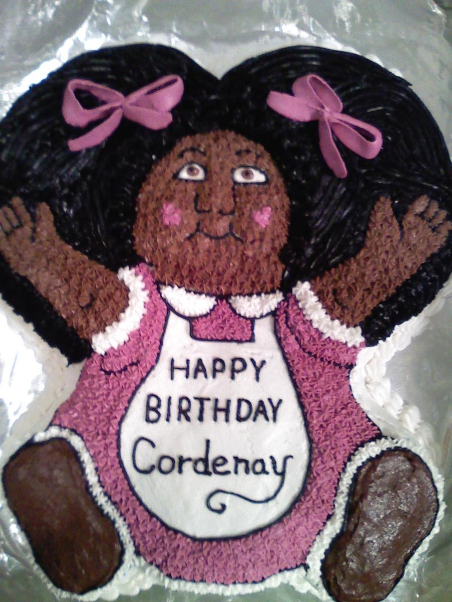 Made for a coworkers' daughter. For her 25th birthday she wanted the same cake she had at her first birthday. I decorated according to a picture of the original cake. It was a butter cake with buttercream and chocolate buttercream icing. She loved it!!