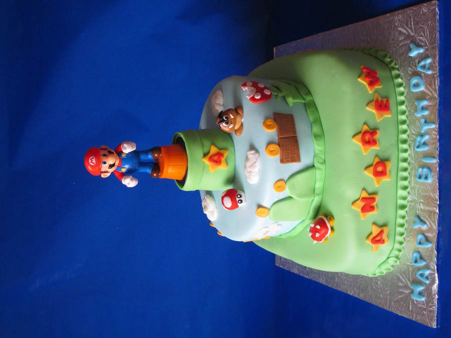 Another Super Mario cake, 10" bottom, 8" top, MMF with gumpaste characters except for plastic Mario guy. TFL