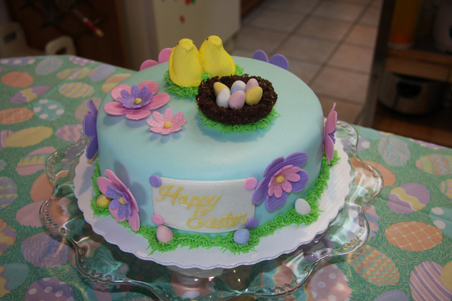 Lemon cake with berry cream cheese filling. MMF to cover. Wilton fondant, candy, and buttercream to decorate. Nest is shredded wheat and chocolate.