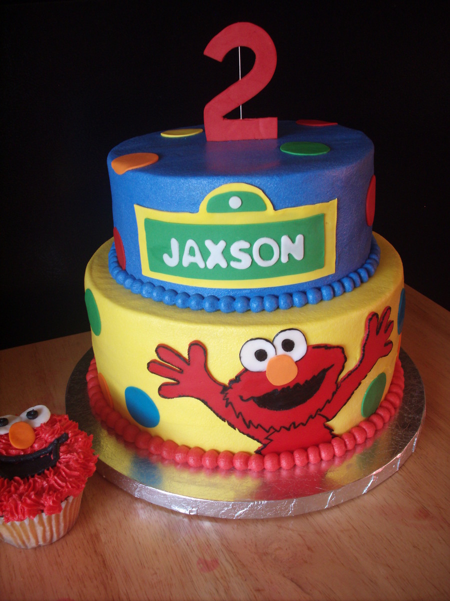 8/10 buttercream with fondant elmo and polka dots... TFL:)