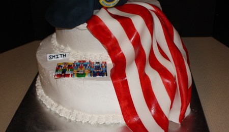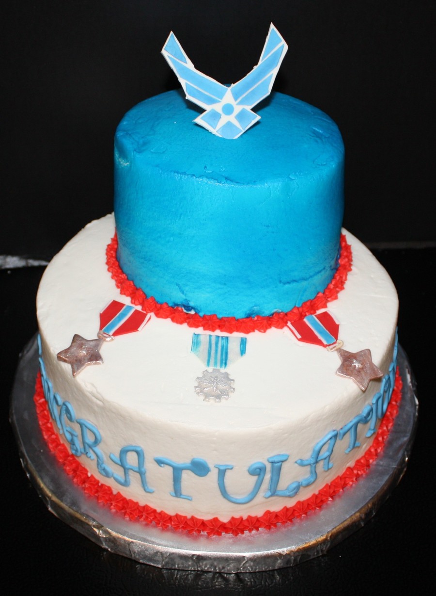 So, my husband was awarded the Bronze Star this past Friday and I am SOOO proud of him. I had a BBQ in his and his friend's honor. They both earned the medal from their last deployment. Anyway, AF symbol and medals are gumpaste (the one in the middle is an achievement medal. My husband said he couldn't have done it without his team, and one other guy came to the BBQ from his team and that is the medal he earned) Anyway...congratulations is fondant. Everything else BC. WASC cake.