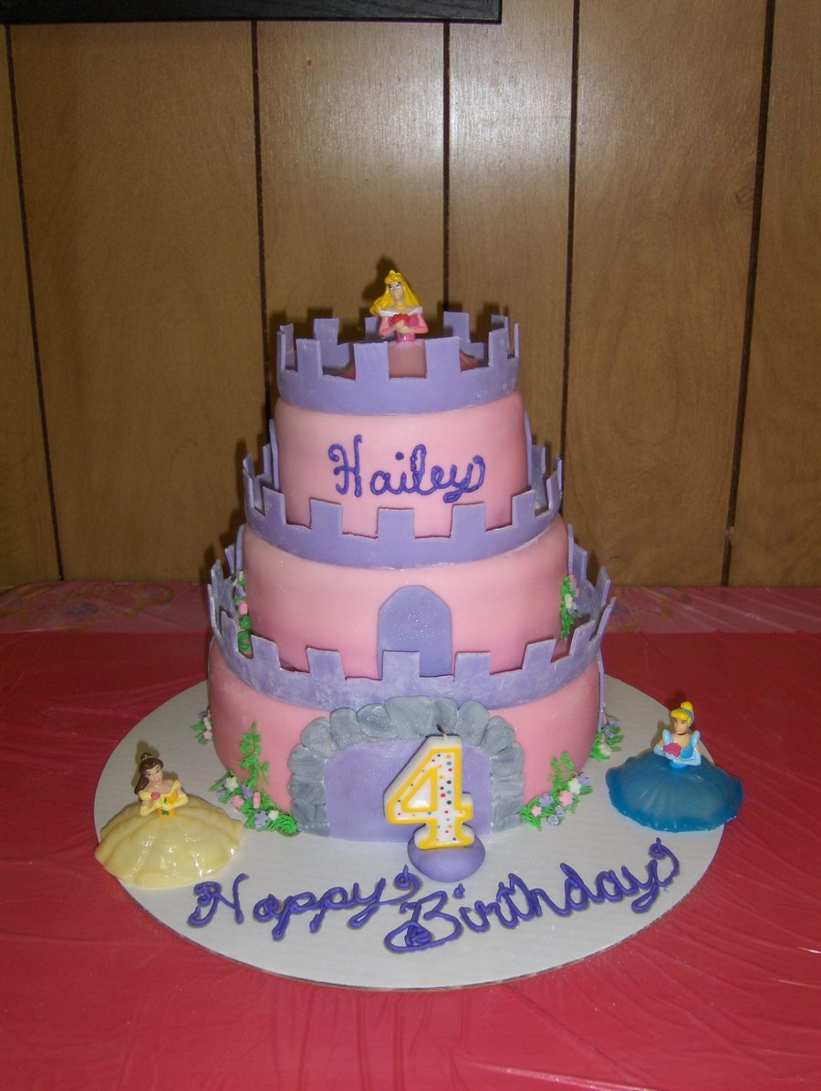 This is a princess castle cake that my daughter wanted for her 4th birthday. I had a ton of fun making it and it was delicious, too! Chocolate cake with vanilla buttercream and homemade marshmallow fondant. YUM! Now little girl I know wants one of these.