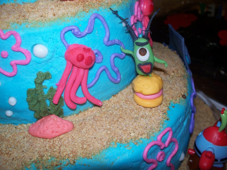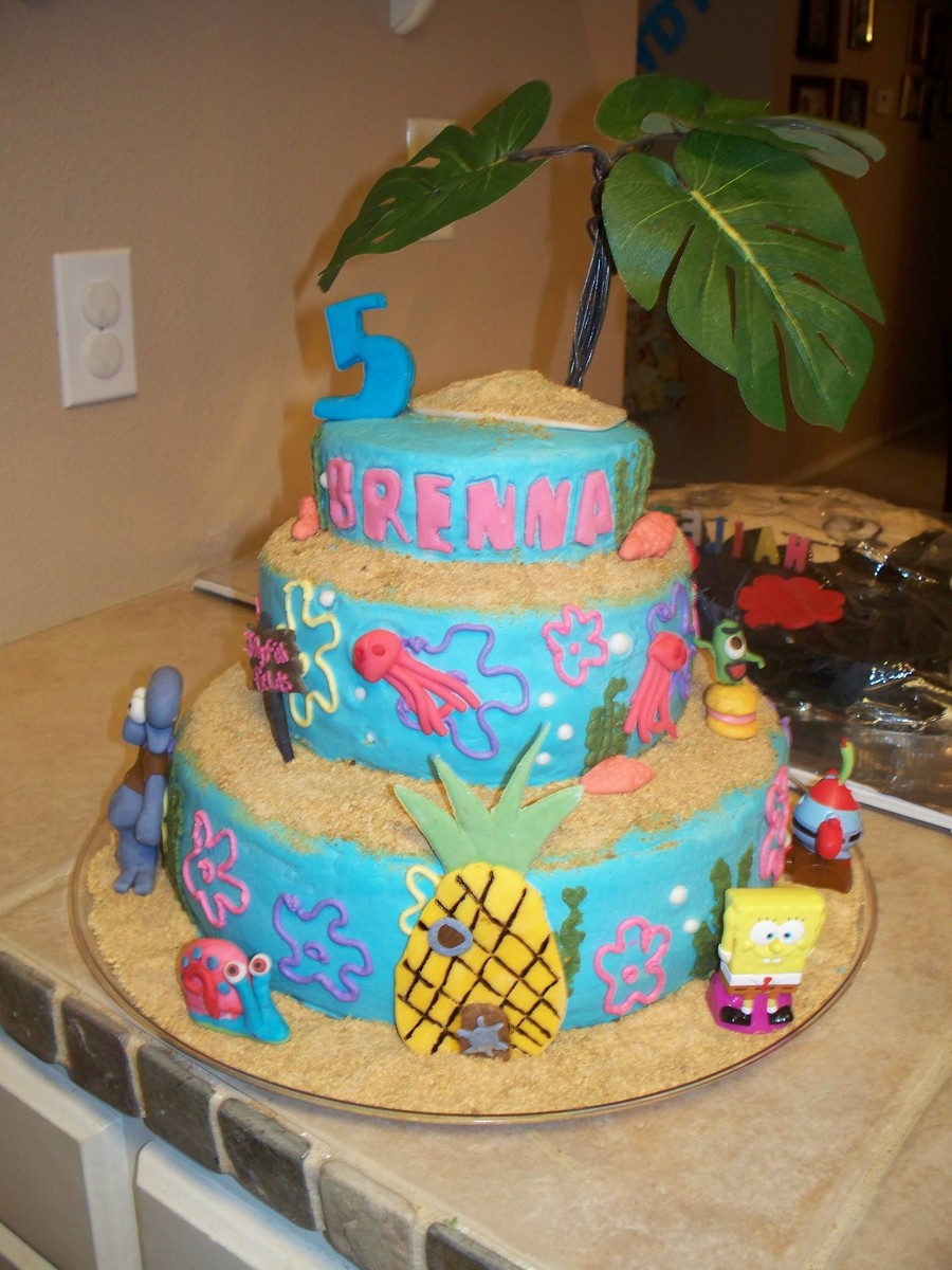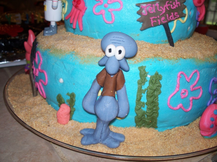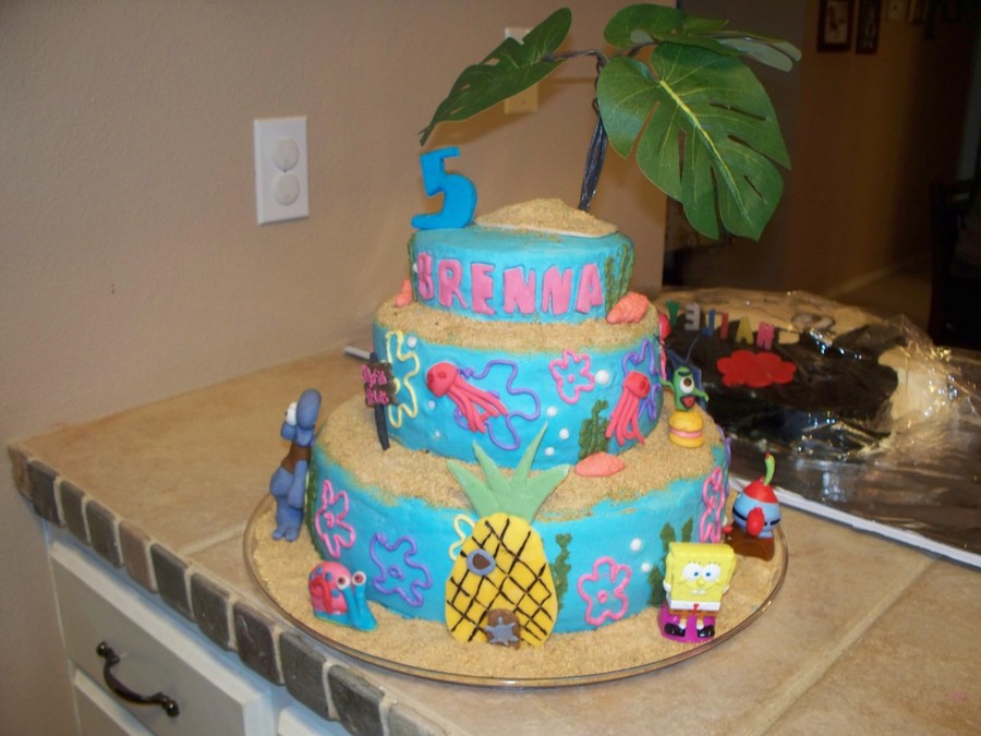 My daughter wanted a cake that depicted Bikini Bottom with all of her favorite characters. All characters are made from fondant except for Sandy, Mr. Crabs, Spongebob and Patrick.