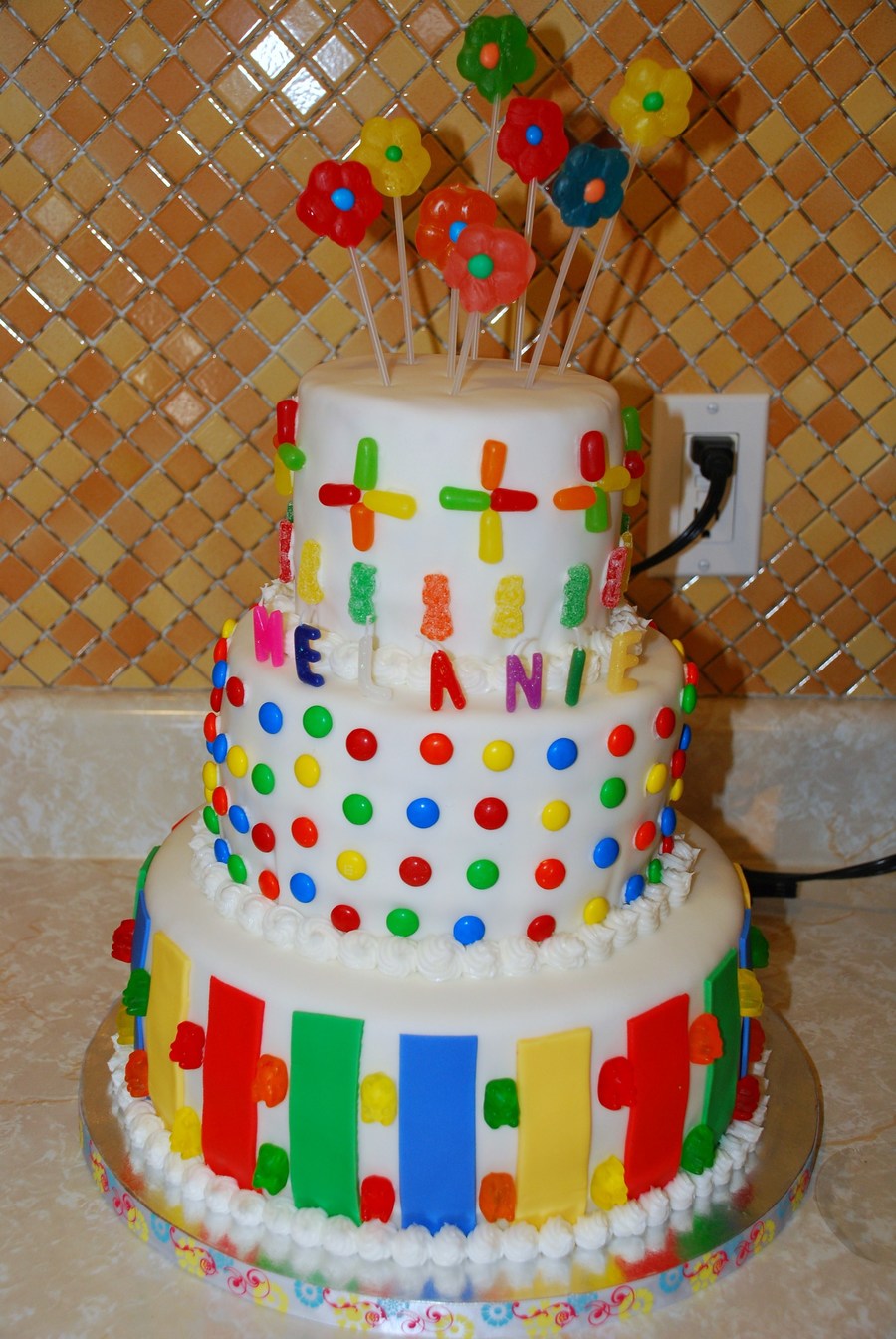 A cake I did for my daughter's b-day. All is fondant. Decorations are candies. TFL.