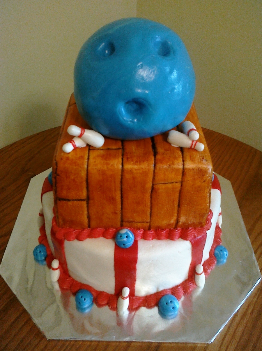 Bowling ball sitting on a lane.