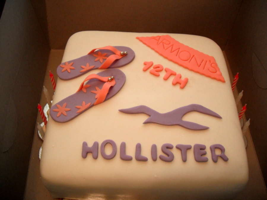9 inch square cake. MMF, and gumpaste, printed out hollister logo and used an exacto knife to shape/cut it