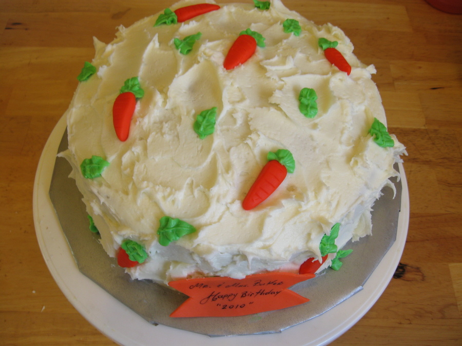 Carrot Cake with cheese cream icing. Baby carrots made out of fondant!!!