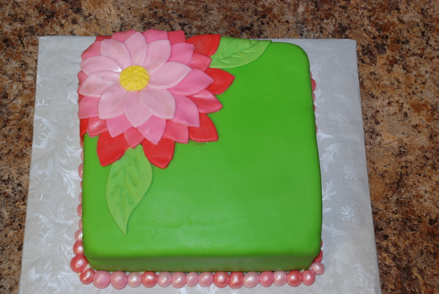 2 layer strawberry cream cake with vanilla buttercream covered with fondant.