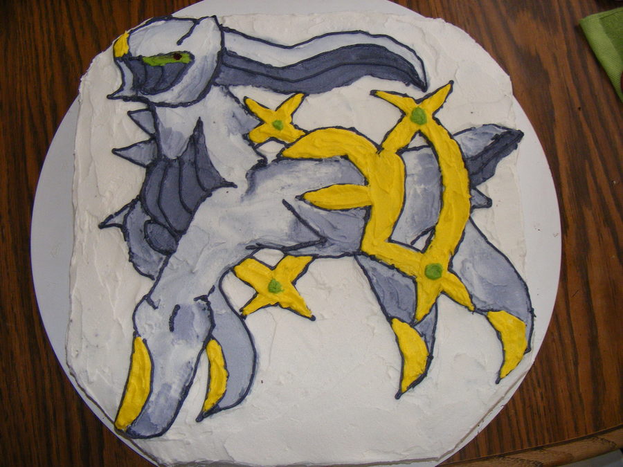 Cake with a pokemon character drawn on it. Hand drawn on.