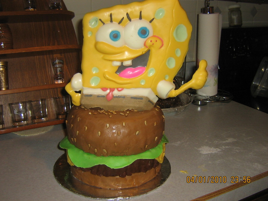 The Spongebob portion is made with the Spongebob cake pan and candy melts. The bottom is covered in all fondant. I found this in the latest yearbook. It was fun to make. Could have turned out better if I would have had more fondant. I spread it a little too thin on this one, but I'm still happy with how it turned out.
