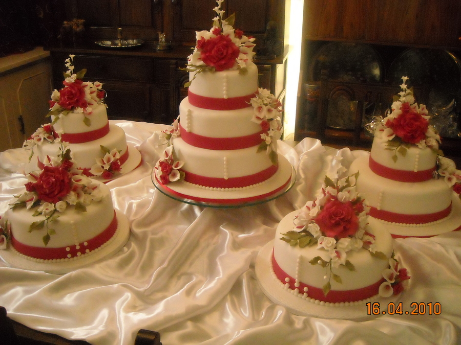 1x3 t ier, 2x2 tier, 2x1 tier and one cake for packing in small boxes. Large order for one wedding! it was fun but lots of work as i work on my own. thank you cake central for all the inspiration.