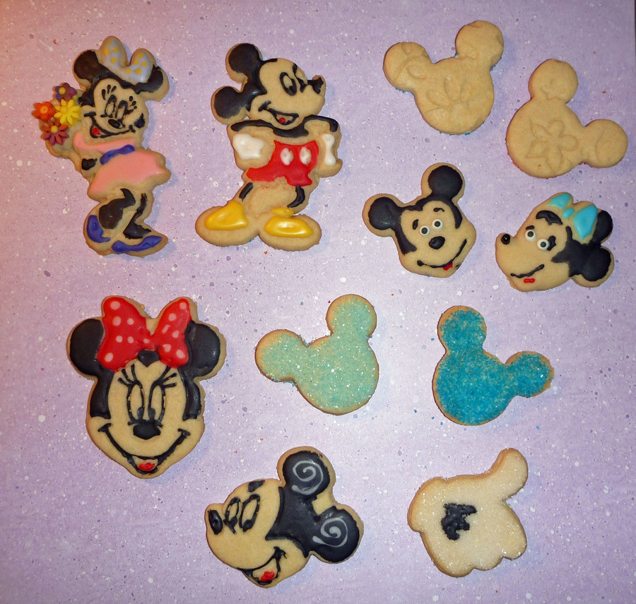 I did these cookies today for my cookie decorating buddy Chelsea's 11th birthday party. It was the first time I used the cutters, they were fun. On the two unfrosted mouse heads, I tried rolling a fondant mat over the cookie dough before I cut them out, I thought that came out rather neat.