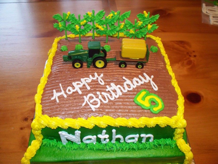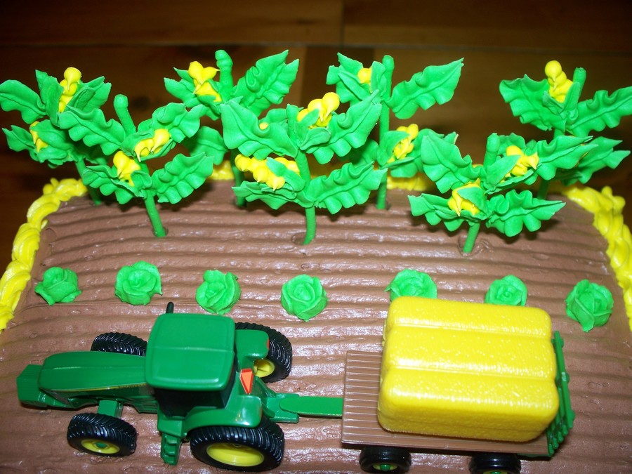 A friend of mine wanted a birthday cake for her son who LOVES John Deere. Chocolae cake with buttercreme frosting. Corn and cabbage/lettuce are dried royal icing.