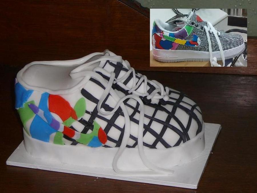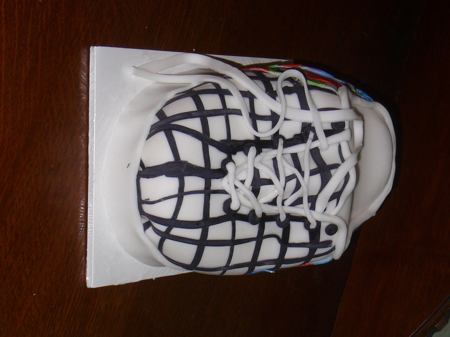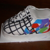 My first attempt at a carved cake from picture. It was harder than I thought but it turned out cute! Red Velvet cake with buttercream and fondant decorations.