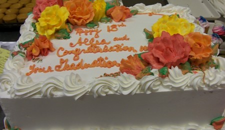 Stacked and decorated and wanted real flowers .