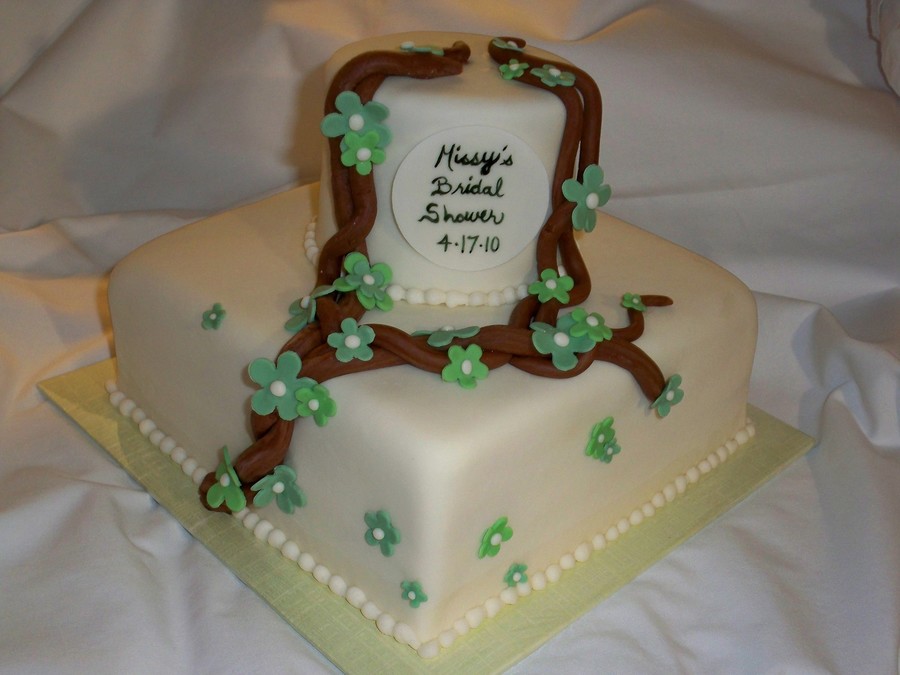 8" sq and 4" round fondant with vines and green flowers