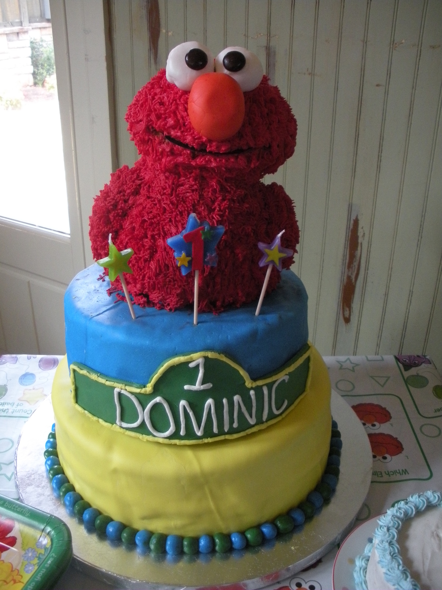 Sesame street birthday cake for a first birthday. Buttercream on Elmo & fondant on the other 2 tiers.