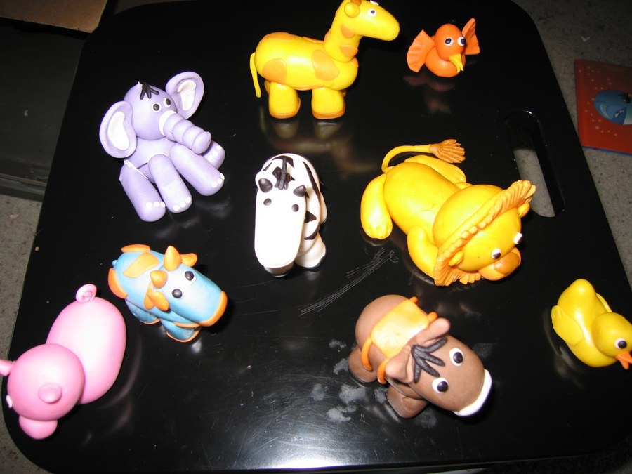 My first try at animals made with fondant. Cake is a orange chiffon cake with butter cream icing.
