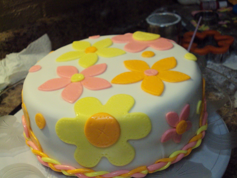 A cake to selebrate the coming of spring. All fondant covered white cake with ganache filling.