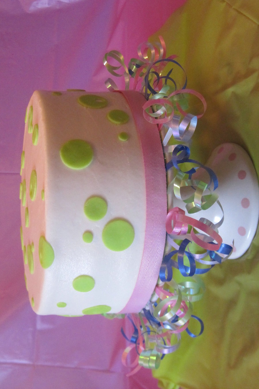 Buttercream with mmf dots.
