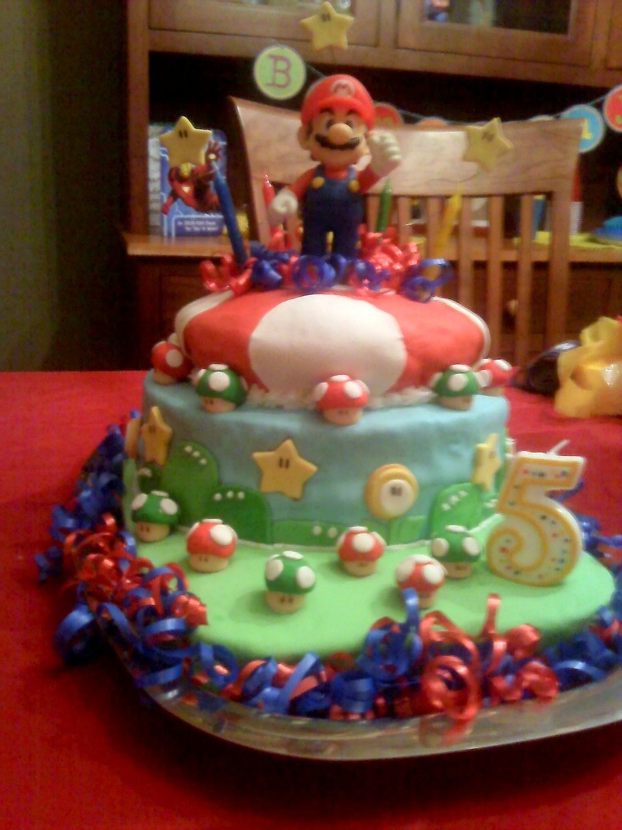 I made this for my son's 5th birthday. It was my first time working with MMF. Everything is made out of MMF, except the Mario toy on top of the cake. Excuse the quality of the picture, it was taken on my phone. I wasn't thrilled with the top layer as I had to use a foil cake pan that I molded into the shape I wanted. My son was thrilled so that is all that matters! :)