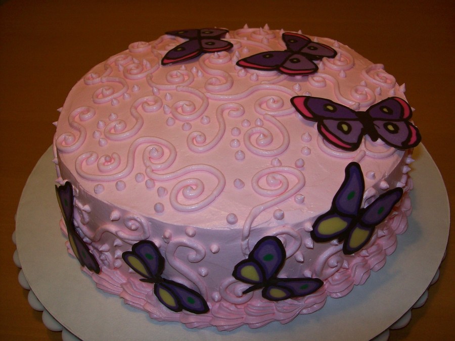 Butterflies are chocolate transfers, chocolate buttermilk cake, raspberry mousse filling.