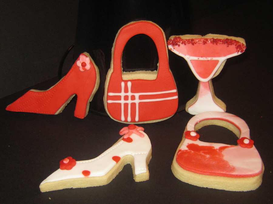 NFSC with MMF and royal icing. Love playing with the colors and patterns on shoes and purse cookies!
