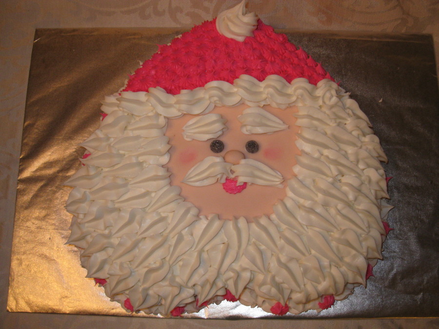 Made at x-mas time for my daughters class b-day party, decorated in bc, fondant face and gumdrop eyes. He had a hot pink hat.