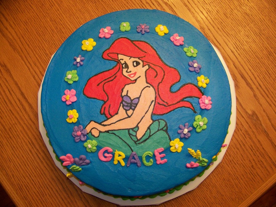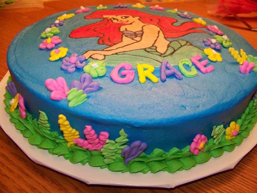 Flower and Seaweed accents made with royal icing. Ariel image made w/buttercream using frozen transfer.