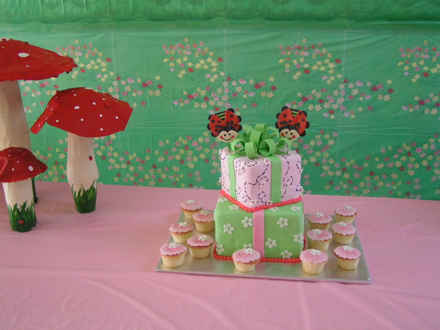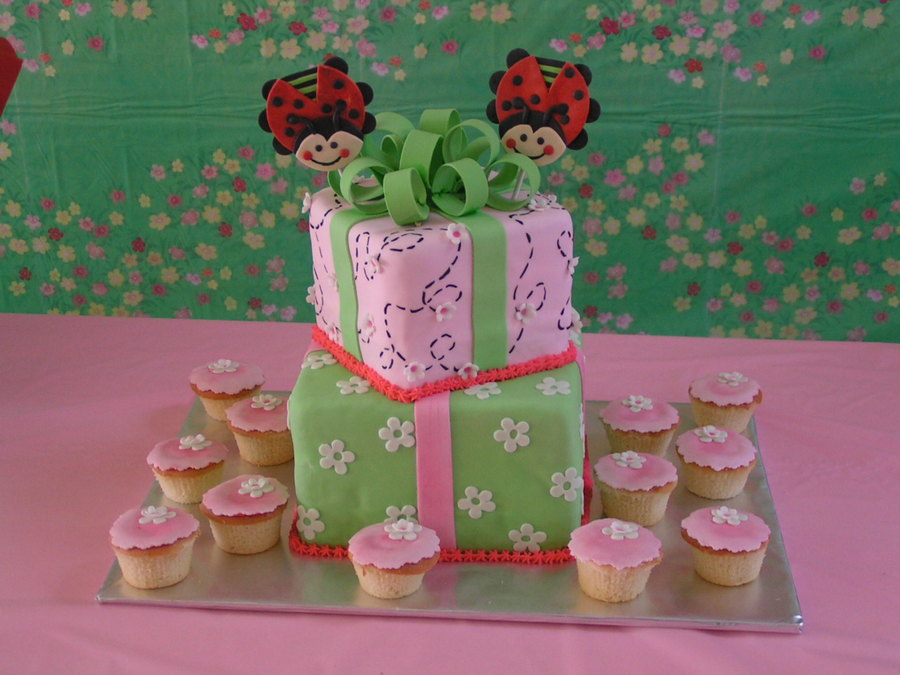 This cake was done for a little girl turning 3. The bow and ladybugs are made out of gum paste. Thanks for looking.
