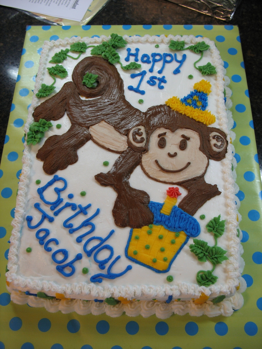 Sheet cake 1/2 choc & 1/2 wt for a friend's child. All BC. Monkey free handed and transferred with dec gel
