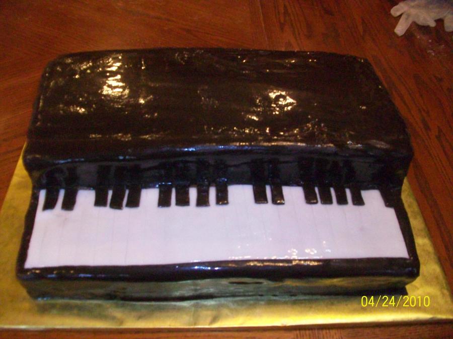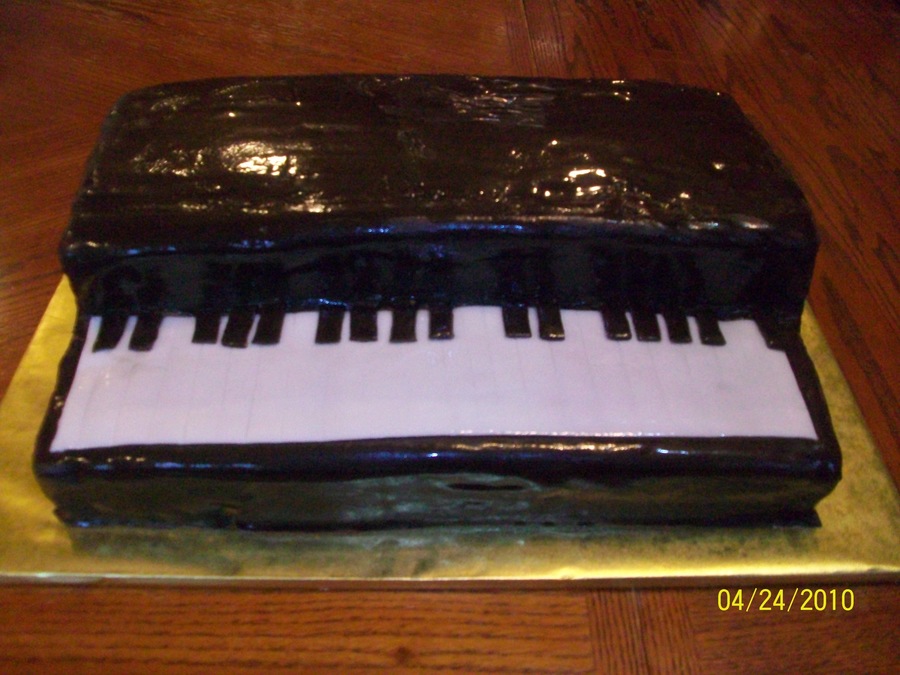 This is my first time making a piano. I originally wanted to sculpt a guitar but time was against me and I couldnot find a board big enough for the guitar. As you can tell this was hurried thru. I had an hour and a half to put it all together. The cake is chocolate with chocolate icing covered in Rhonda's Ultimate Chocolate MMF and Michelle Foster's Updated MMF for the keys.