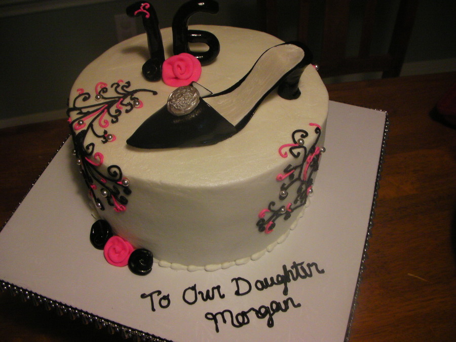 All buttercream with gumpaste shoe and fondant ribbon roses