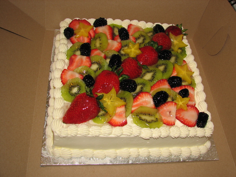 Second cake this week using fresh cut fruit. Cake is white sponge, stabilized sweetened whipped cream frosting, cooked custard filling.