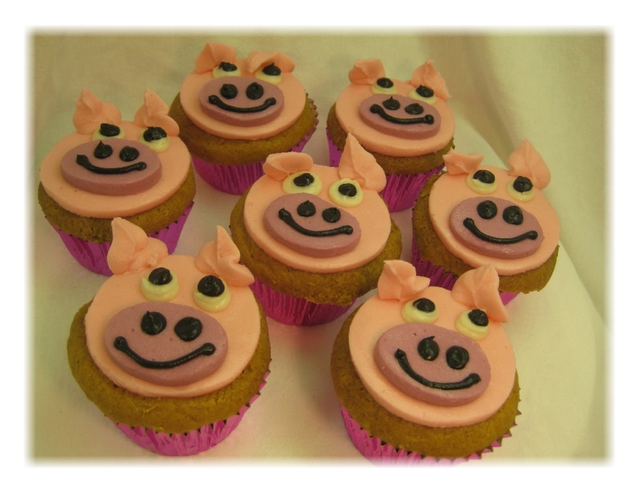 Froze cream cheese icing between wax paper for 10 minutes. Used a cutter to cut cirlces, and place quickly on cupcake. Easy to do, and I was very happy with the nice, consistent circular shape. Used same technique with oval cutter for snout.
