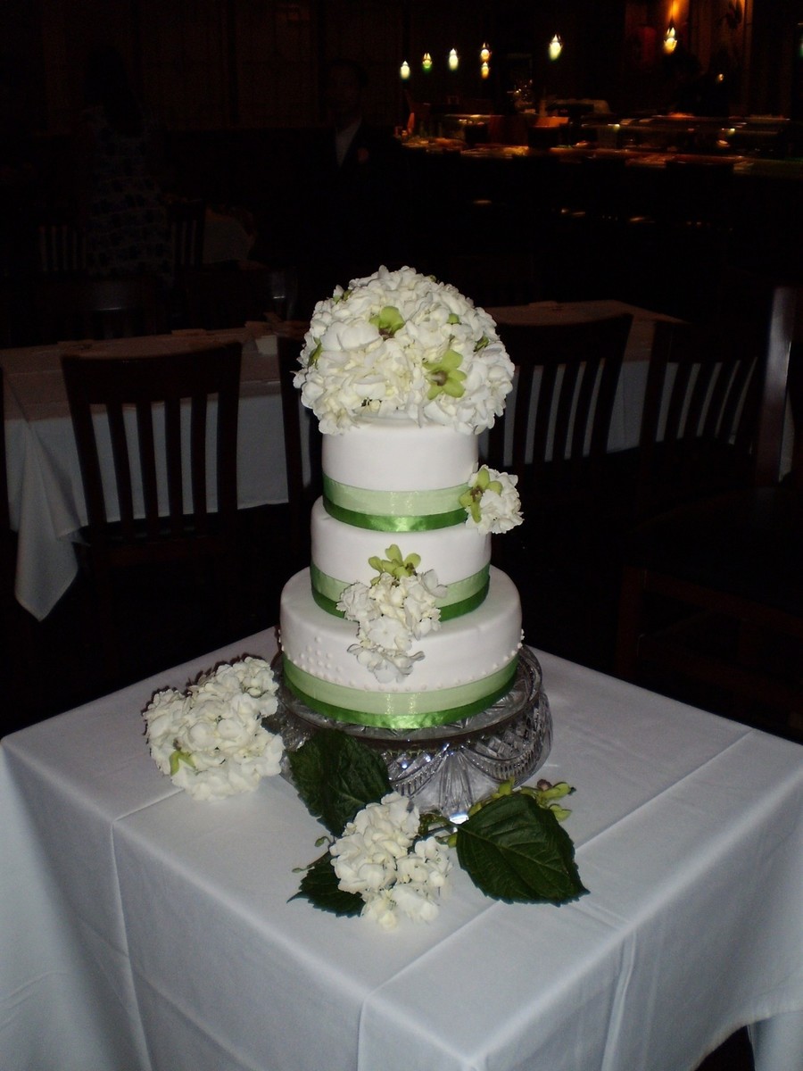 I made this wedding cake for a friend of a friend. I'd love to take credit for the realistic flowers... but they are so realistic because they are, well... real. I was very pleased with how the cake turned out. The couple loved it and I got great reviews on the flavor as well as the look. ;)