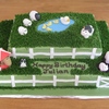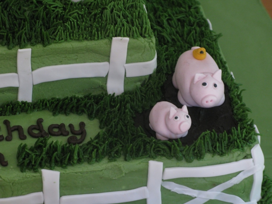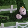 For a first birthday party. Organic vanilla cake with chocolate chips and creamcheese buttercream. The animals are made with modelling paste.