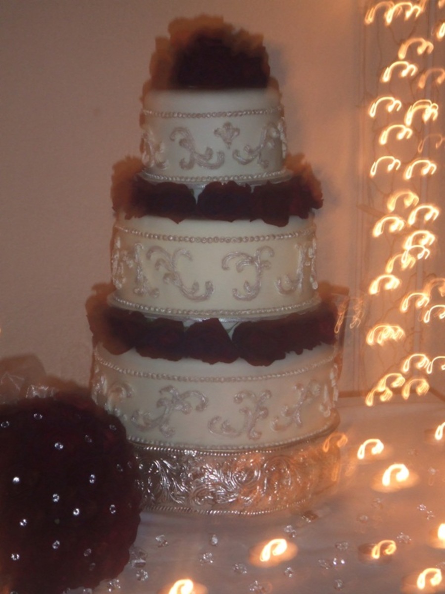 MMF, painted silver scrolling, real roses.