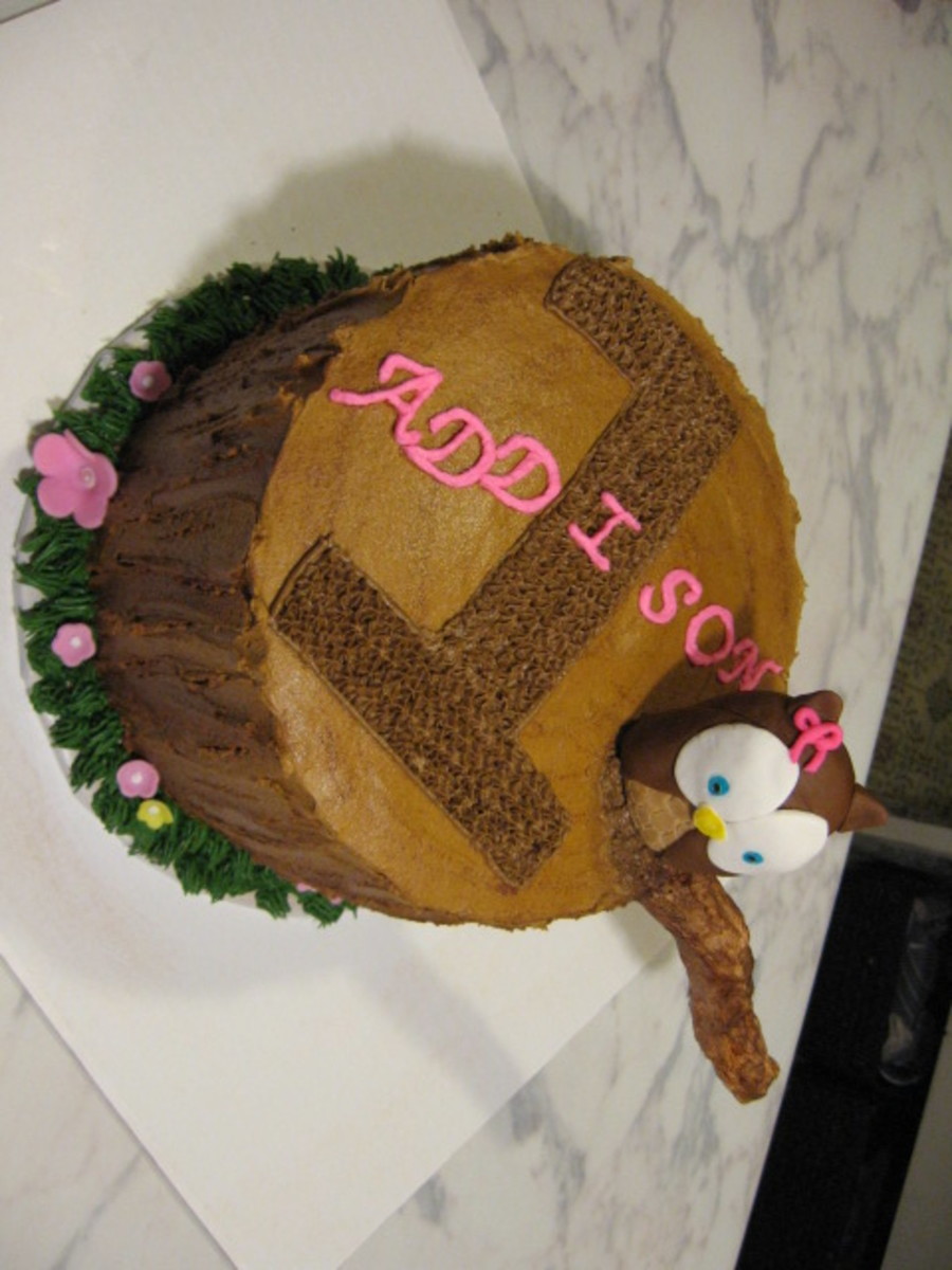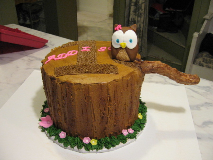 4-8inch round layers of lemon cake. all buttercream with rkt branch, fondant owl and flowers. tfl