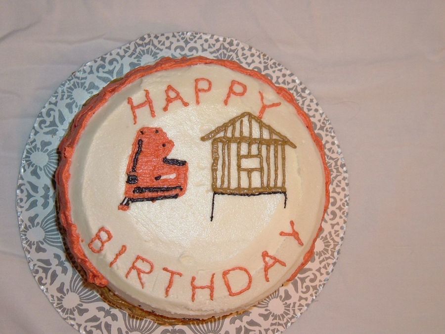 This is a birthday cake I did for My Father-in-law he recently started working with a contractor doing renovations. I got a picture of his nail gun and used that with a construction theme. I found hand tool candles for its presentation.