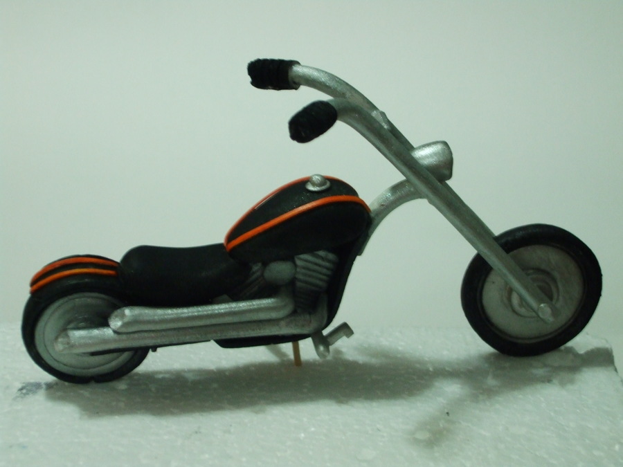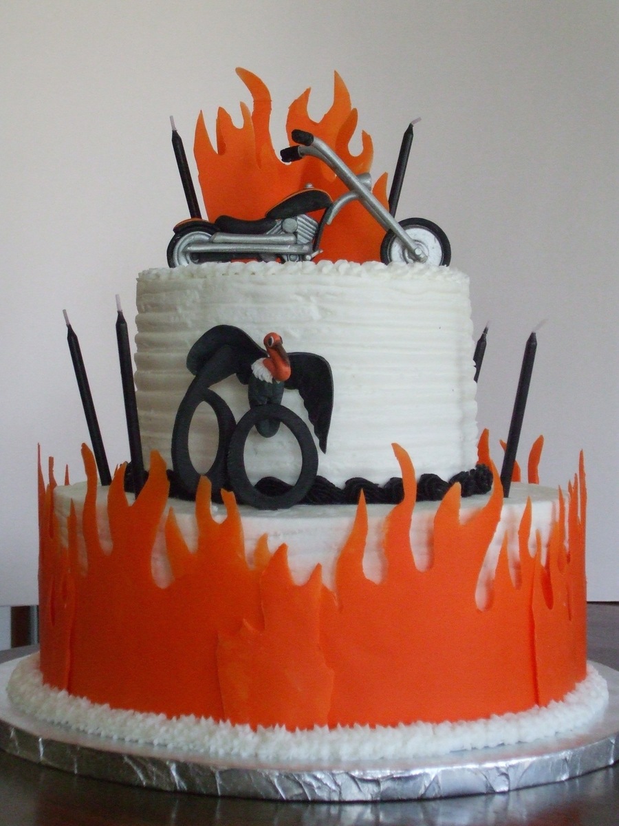 buttercream cake with chocolate flames and gumpaste harley and buzzard