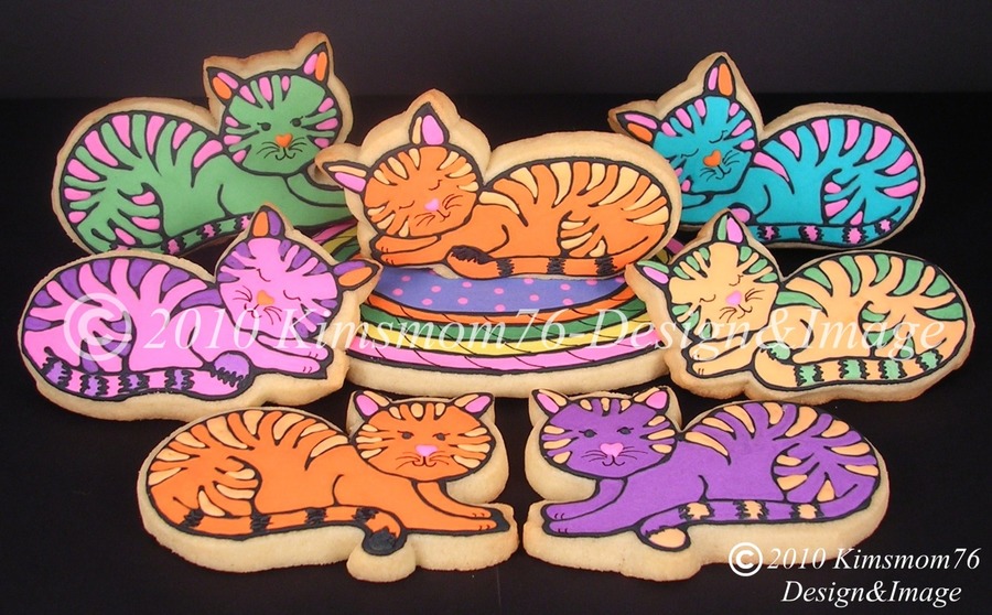 Hand cut NFSC with RI made to my 2-1/2 year old grand-daughter's explicit instructions. "Cats with rainbow lines on she hair". She picked the colors and even the rug idea. I'll post the cat design in sketches and templates. Danielle and I thank you for looking.