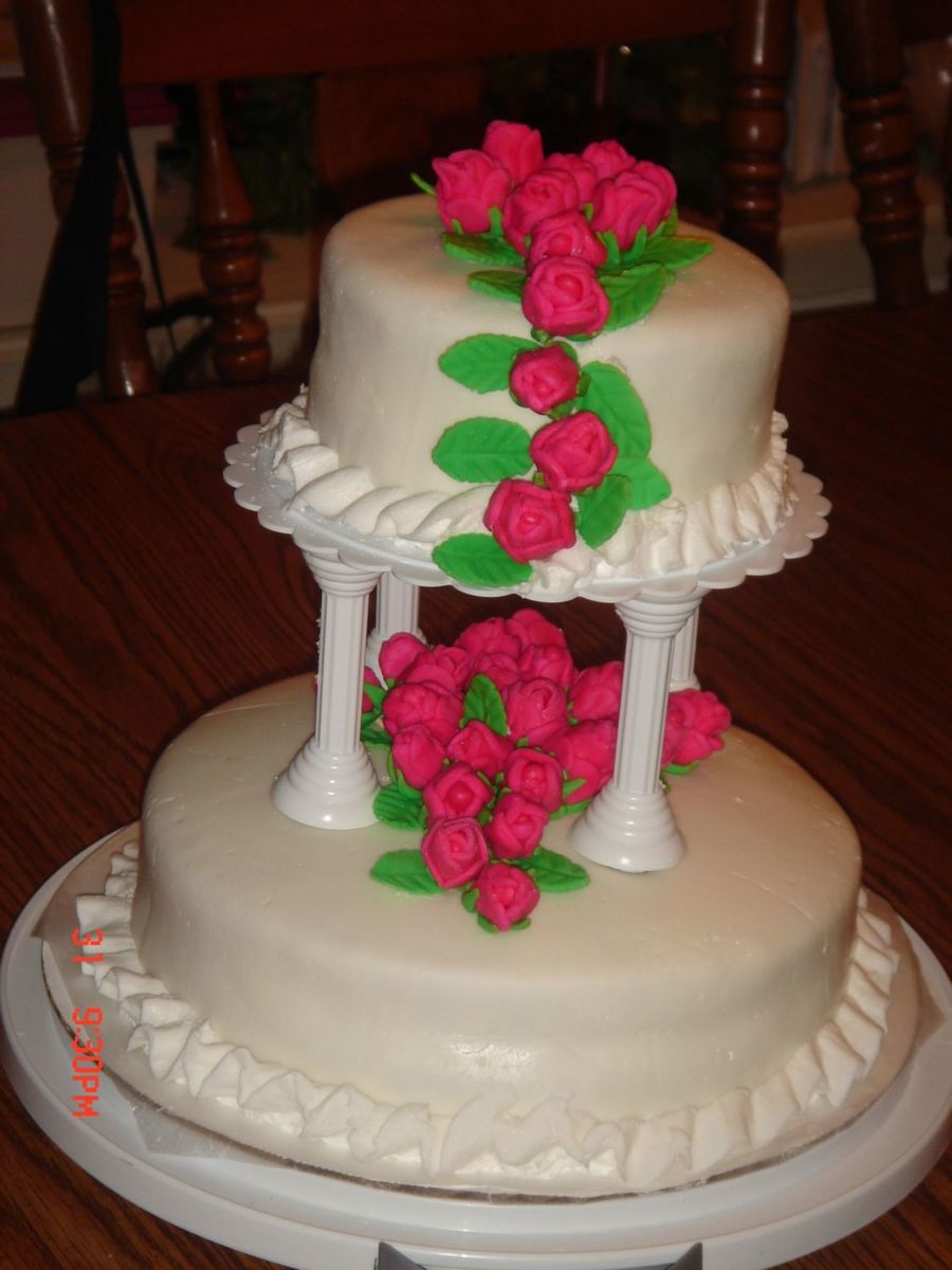 The final cake for Wilton Course 3. I was having trouble making the fondant roses, they turned out like rosebuds.