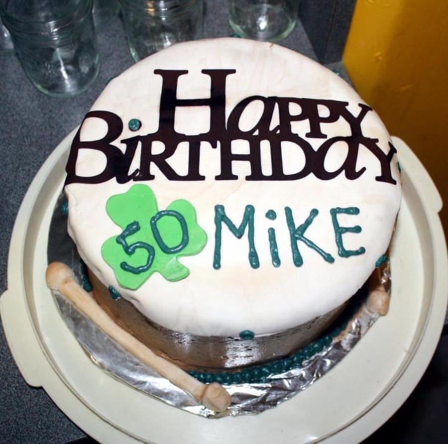 Using the Cricut I cut out the Happy Birthday with chocolate frosting sheets. I am new at this so the lettering was too big. The top is fondant with canvas impression to imitate a drum and then I brushed with cocoa. The cake is AMAZING Chocolate WASC Cake with frosting made with flour and cocoa. Those are fondant drum sticks..lol brushed with cocoa. Although the cake is not beautiful-I got tons of orders??!