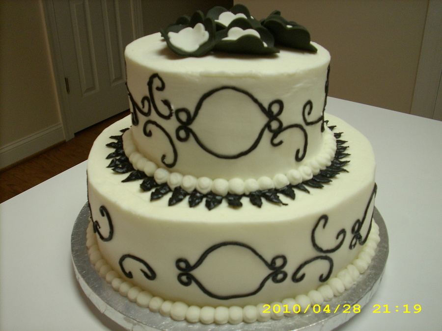 This is the first time using sugarshack's method and icing...still have work to do and my first time doing scrolls. WASC on bottom and Strawberry WASC on top. All BC except for flowers