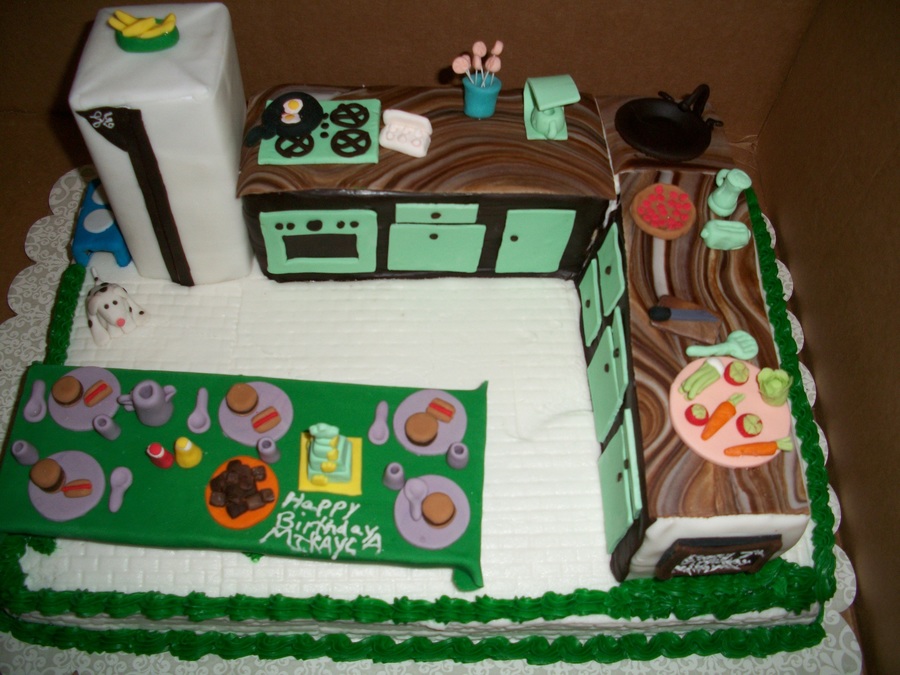 My niece loves her little kitchen and wanted a kitchen cake for her birthday. She picked the colors.