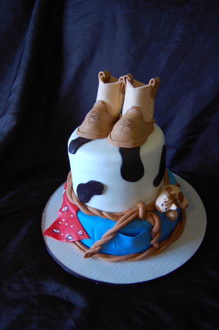 This was made based off of a pic that was sent to me...I don't know who's original design it was though! Gum paste boots and horse.