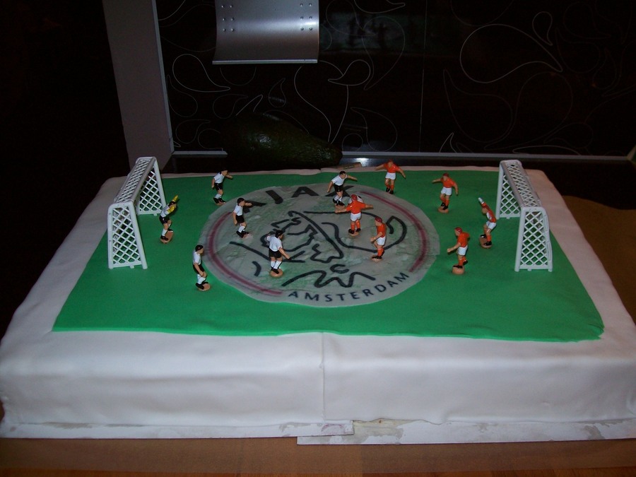 Soccer cake for a girl that loves soccer, with the logo of her favorite team, AJAX.
