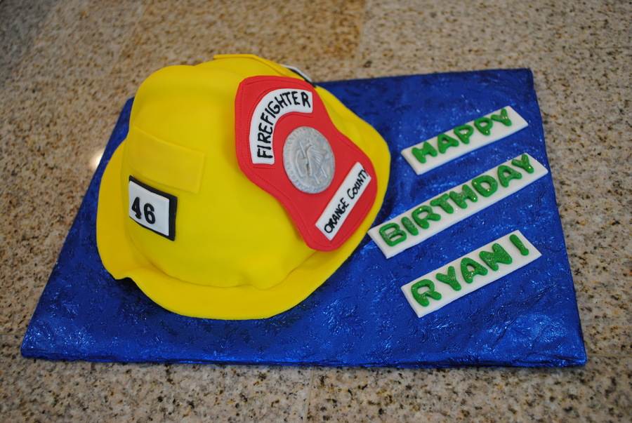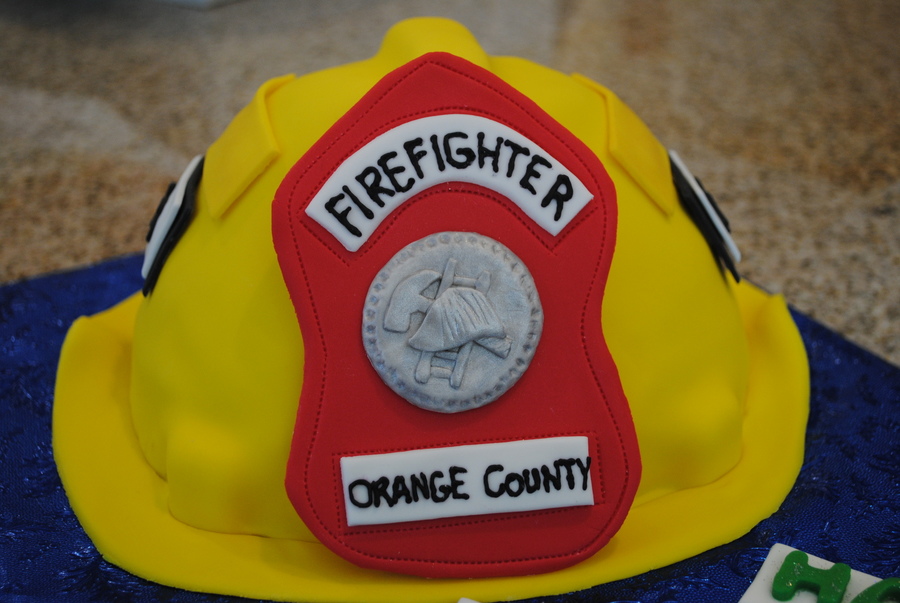Firefighter helmet made of fondant. Used doll cake pan for the mold on the helmet. Really fun cake to do. Thank you to all at Cake Central for the inspiration!