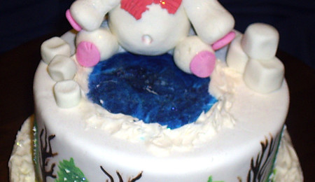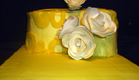 One of my colleague's little one is just around the corner. This cake was made using a teal-colored fondant with a painted patchwork horse on top. A patchwork quilting embosser was impressed into the side of the cake and painted with a mixture of luster dust and alcohol.